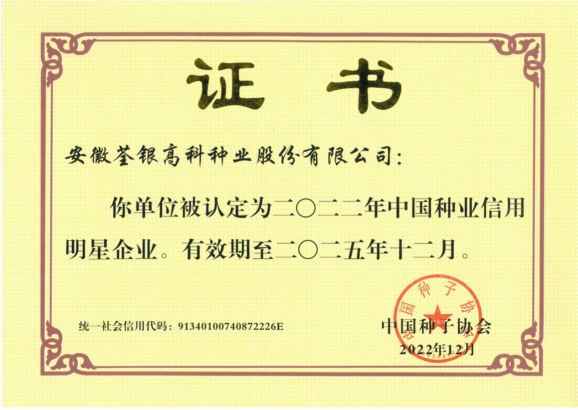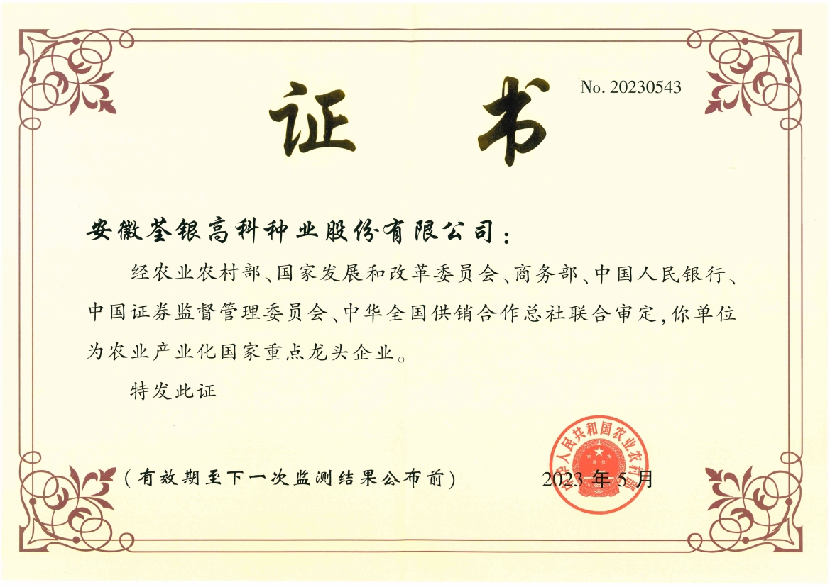 安徽荃銀高科種業(yè)股份有限公司是一家“以種業(yè)為核心、農(nóng)業(yè)服務(wù)為延伸、探索和創(chuàng)新農(nóng)業(yè)多元化發(fā)展”的現(xiàn)代高科技種業(yè)上市公司,證券代碼:300087。公司注冊資金9.47億元,系“中國種業(yè)領(lǐng)軍企業(yè)、農(nóng)業(yè)產(chǎn)業(yè)化國家重點(diǎn)龍頭企業(yè)、國家高新技術(shù)企業(yè)、農(nóng)業(yè)部首批農(nóng)作物種子育繁推一體化企業(yè)、中國種業(yè)信用明星企業(yè)"。在國內(nèi)控股子公司20多家,在國外設(shè)立分支機(jī)構(gòu)4家,良種銷售至全國20多個省(市、區(qū)),出口覆蓋20多個國家與地區(qū),種業(yè)綜合實力、雜交水稻研發(fā)、推廣及海外業(yè)務(wù)規(guī)模均居全國種子企業(yè)前2位。